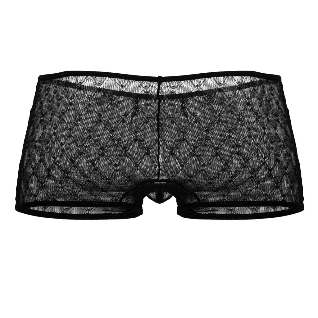 Step into understated elegance with these sheer black men's trunks. Made from soft, patterned mesh, they offer full coverage while maintaining a seductive, see-through appeal. The contoured pouch and stretchy fabric provide a comfortable, body-hugging fit perfect for everyday wear or special occasions.