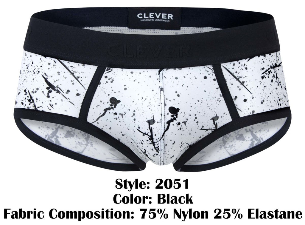Clever 2051 Brochazos Mens Splatter Print Briefs Black & White