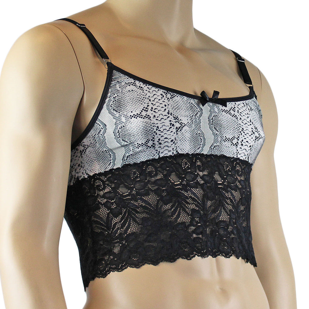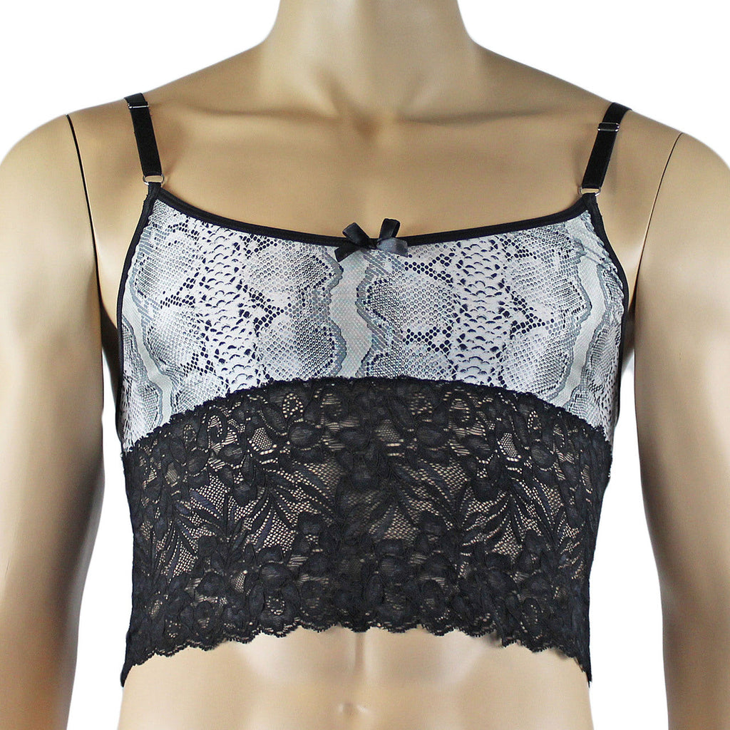Mens Grey Snake Print & Black Lace Bra Top Camisole