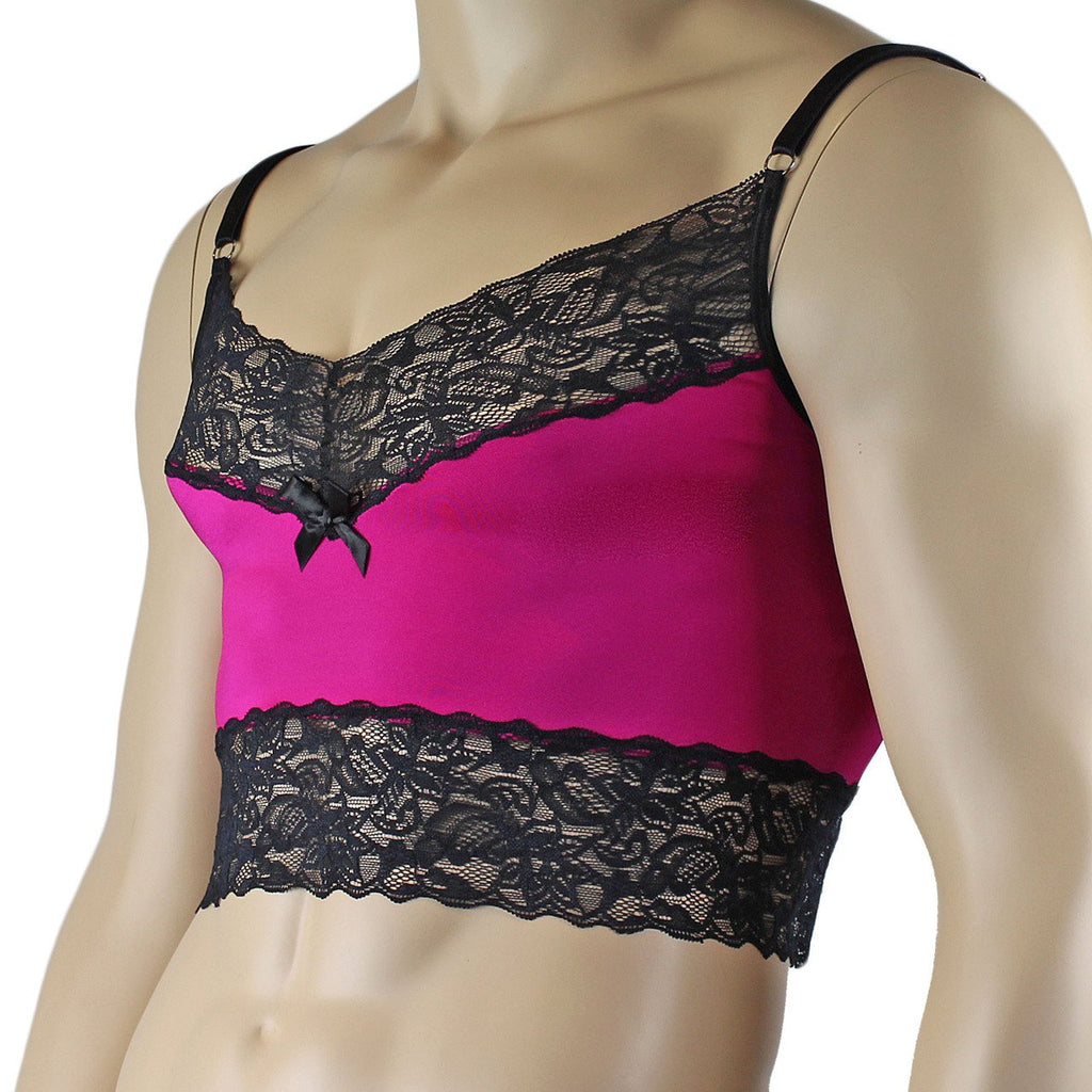 Mens Glamour Camisole Top with Lace Trim - Sizes up to 3XL Raspberry & Black