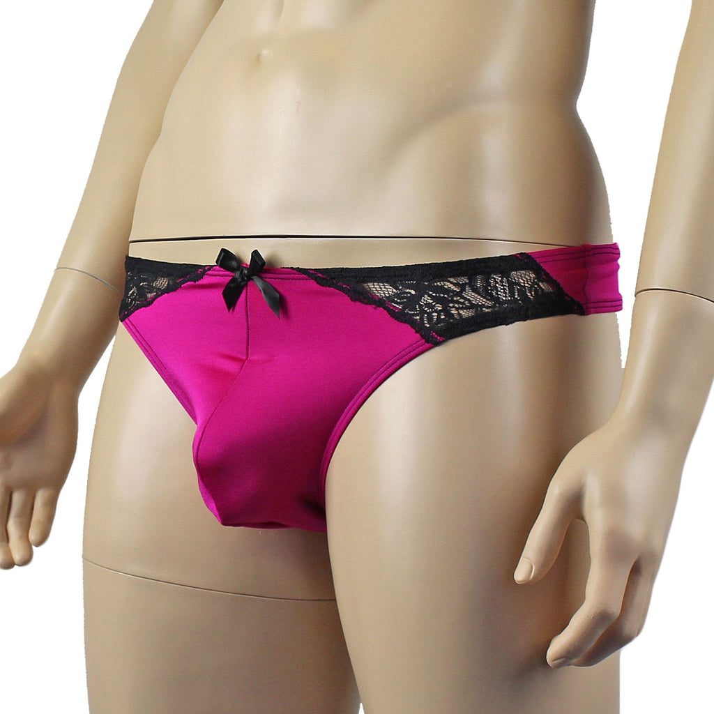 Mens Glamour Wide Front Thong Raspberry & Black Lace