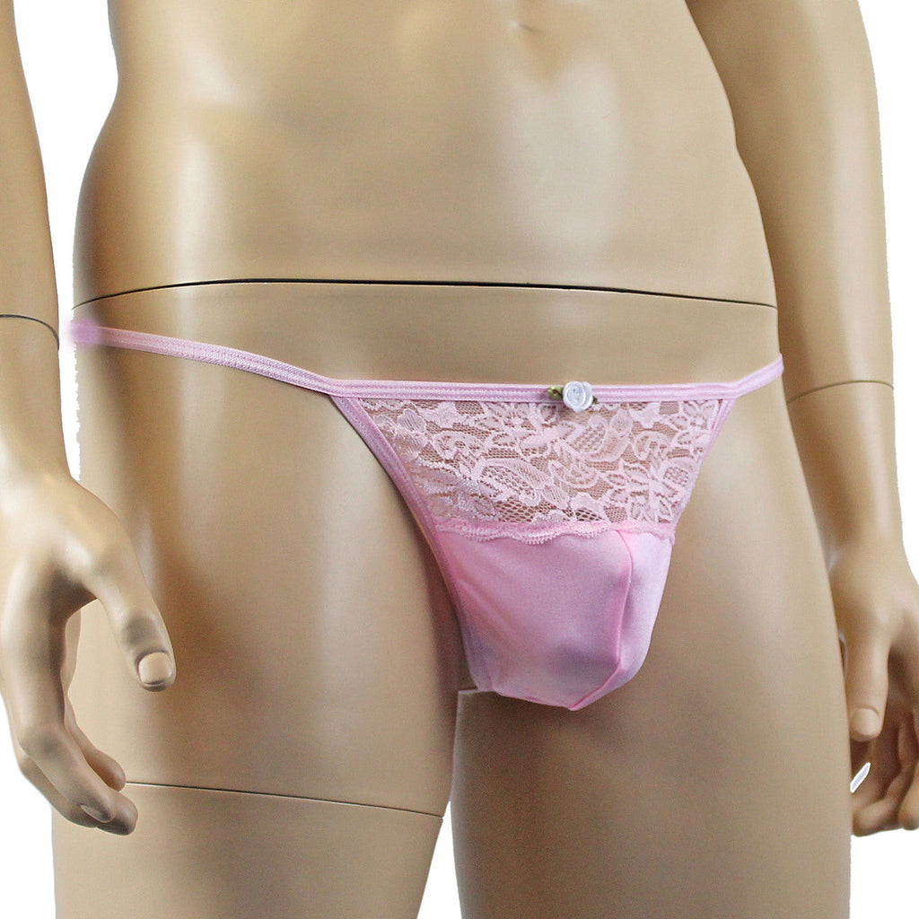 Male Penny Lingerie Stretch Spandex Pouch G string with Lace Light Pink