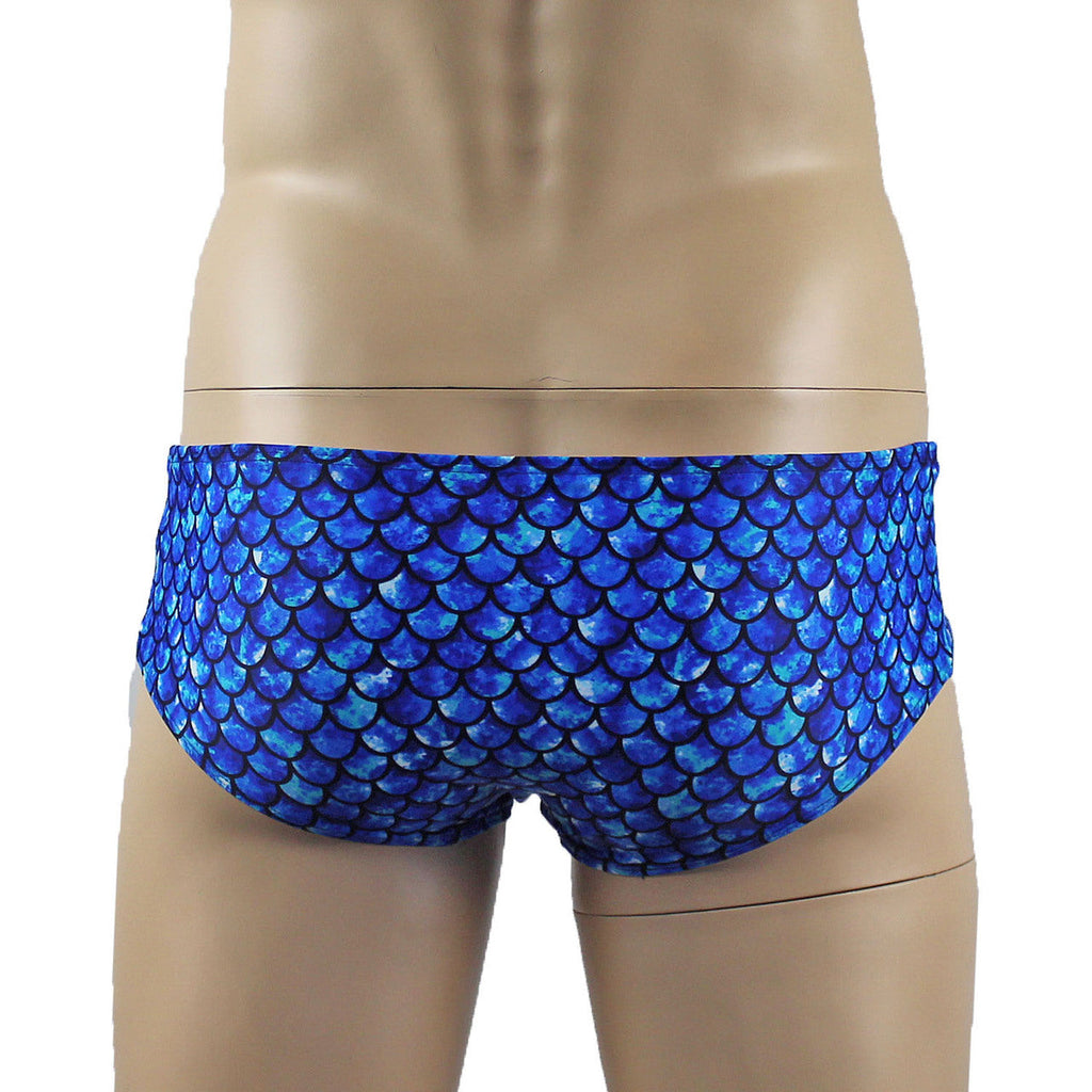 Mens stretch Merman Aqua Man fish scale tail spandex mini Boxer Briefs with pouch front and elastic legs and waist