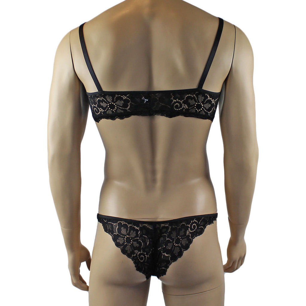 Mens Sweetheart Scalloped Shiny Lace Bra Top and Panty Black