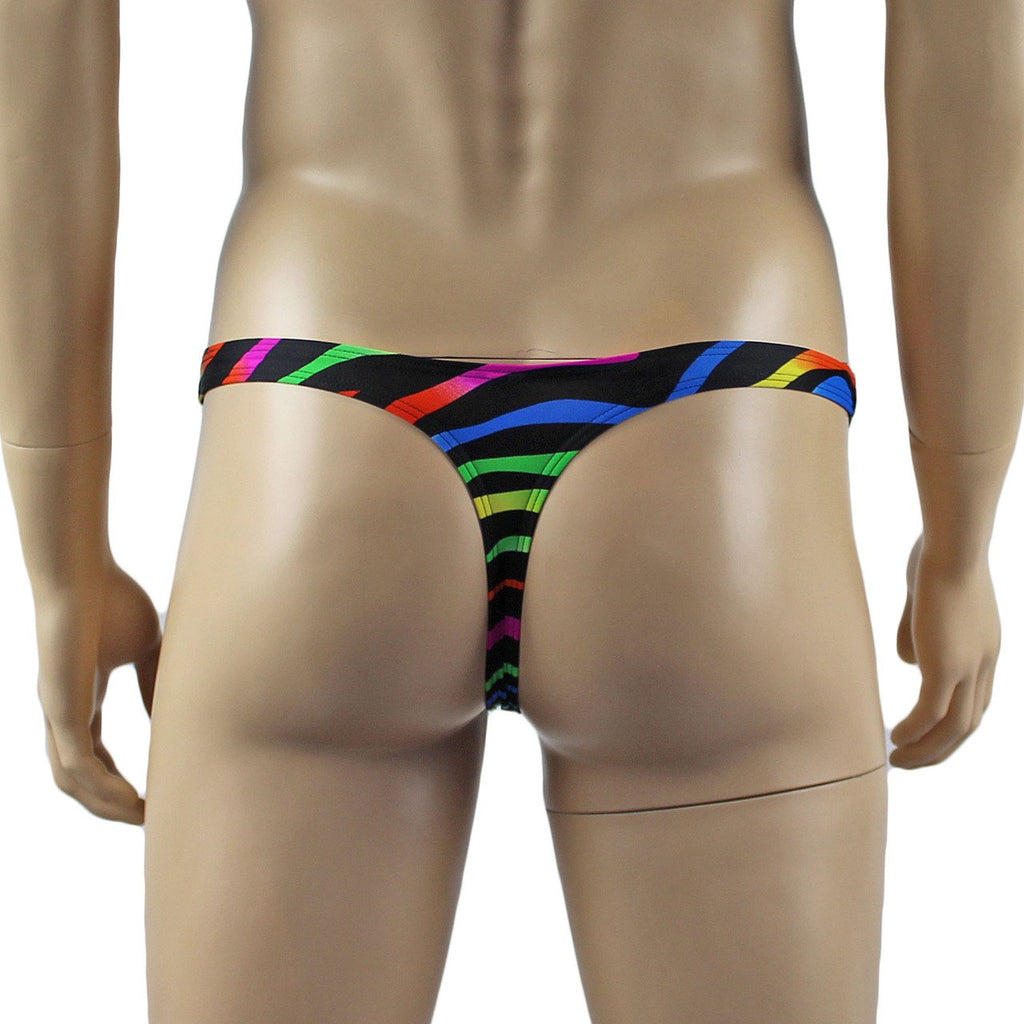 Mens stretch spandex rainbow zebra patterned pouch front Thong, has a pouch front to cover all your bits and a sexy shape. Brings out the animal in you