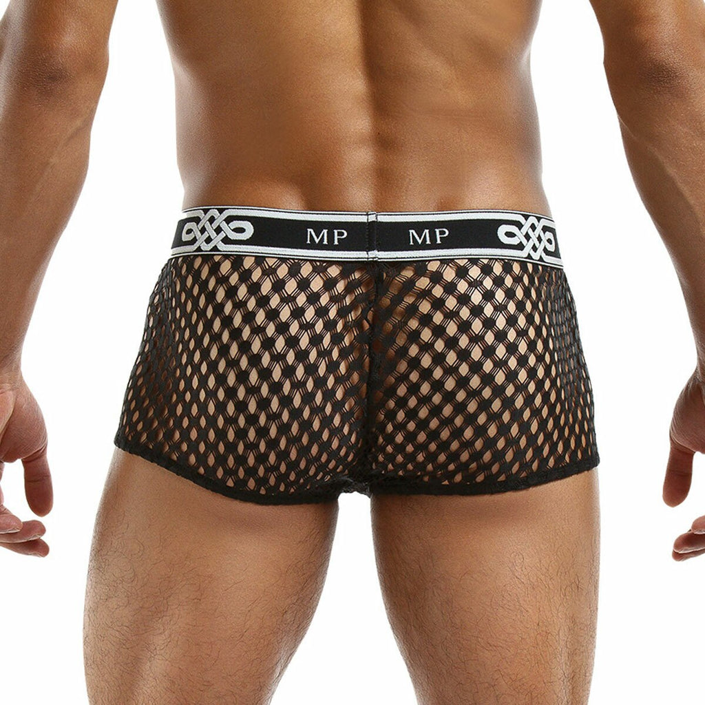 Stretch nylon peep show light ans soft net mini Boxer Shorts with stretch mesh lining in front pouch for ultimate comfort and plush comfortable waistband