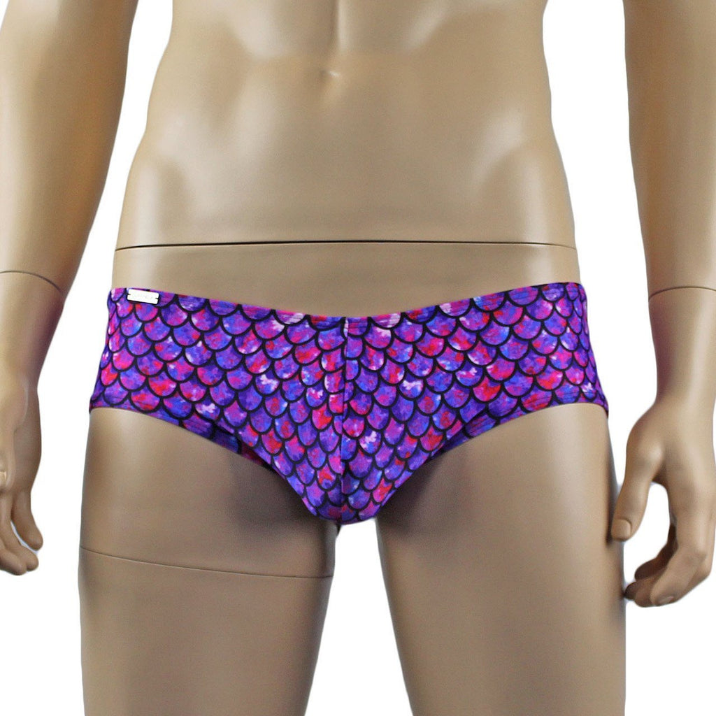 Mens stretch Merman Aqua Man fish scale tail spandex mini Boxer Briefs with pouch front and elastic legs and waist